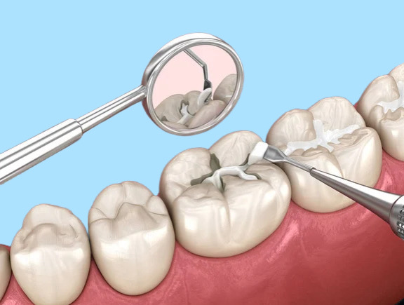 Teeth restoration and filling involve repairing damaged or decayed teeth by filling cavities with composite materials. This procedure restores the tooth’s structure, function, and appearance, helping to prevent further decay and ensuring long-lasting oral health.